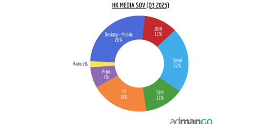 In Q3 2025, SEM accounted for 13% of total media usage, ranking fourth behind Desktop/Mobile, Social Media, and Television. Average monthly SEM ad spend exceeded HK$300 million. The top five SEM ad spend categories were Travel, Banking, Computer, Business and Insurance, with Travel advertisers allocating over 30% of their media budgets on SEM.