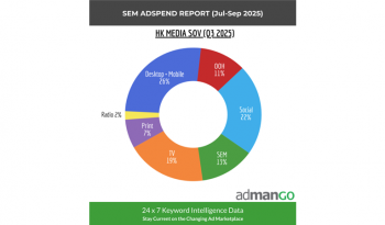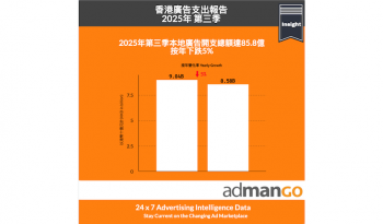 根據 admanGo 廣告數據,2025 年第三季香港整體廣告開支總額錄得 85