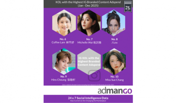 根據admanGo數據顯示,以2025年品牌內容廣告總銷售額計算,十大IG KO