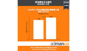 根據 admanGo 廣告數據,2026 年1-2月香港廣告開支總額錄得56億港