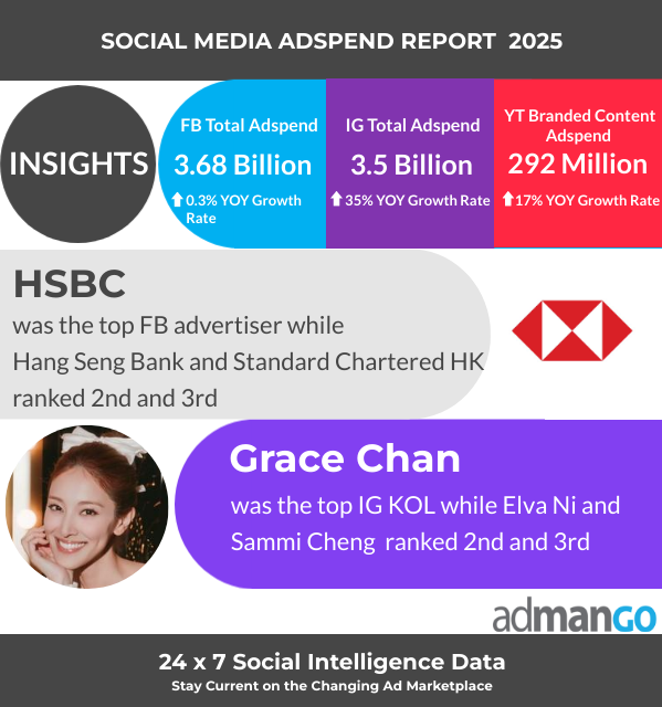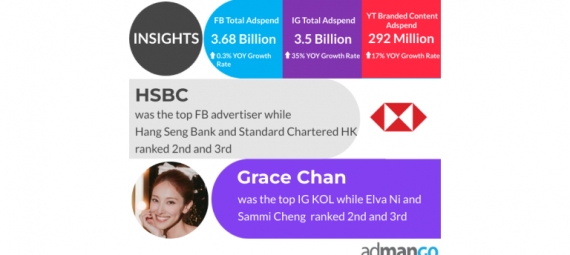 HSBC Hong Kong, 恒生銀行 及 Standard Chartered HK 是Facebook廣告開支最高的廣告商三甲,而陳凱琳則成為品牌內容廣告銷售額最高的IG KOL。